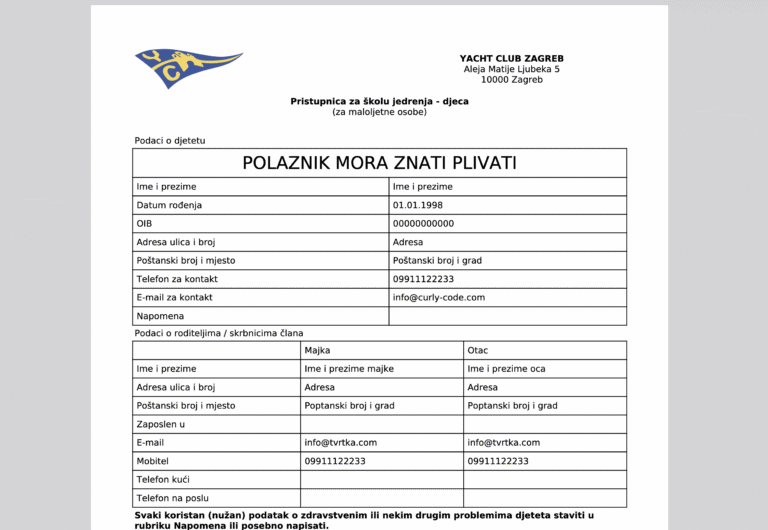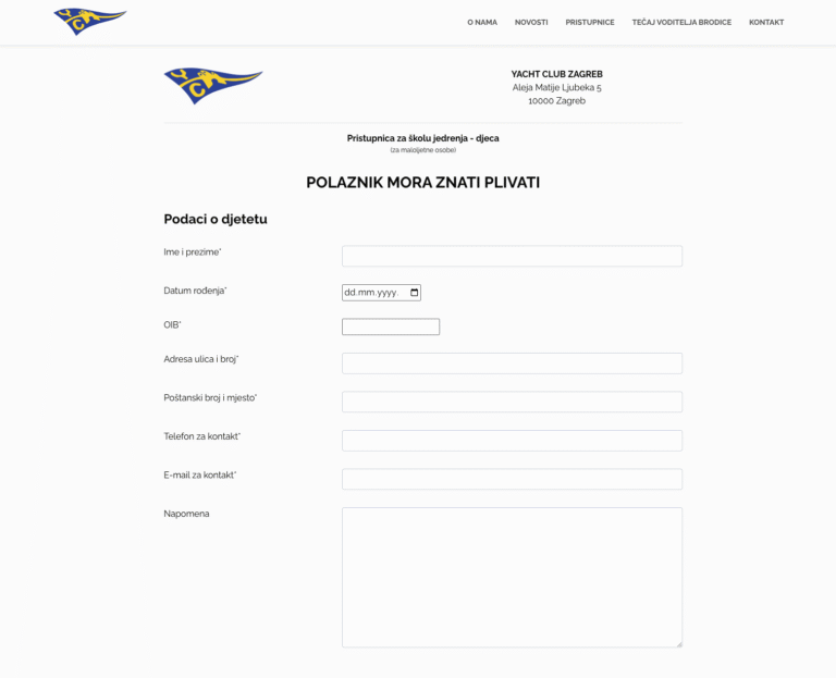 New web with a dose of severity and a bigger accent on attracting young ones to relaxing sports. Signing up, visitors will get generated pdf with all their info for submission.