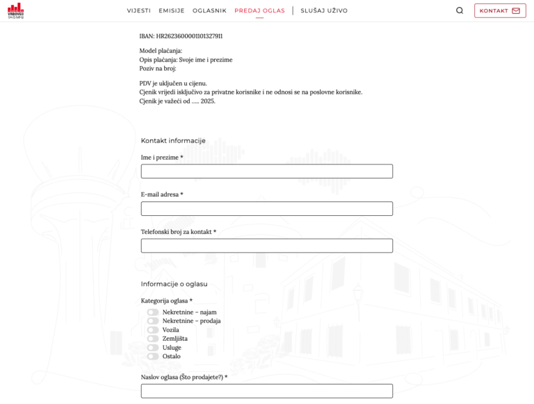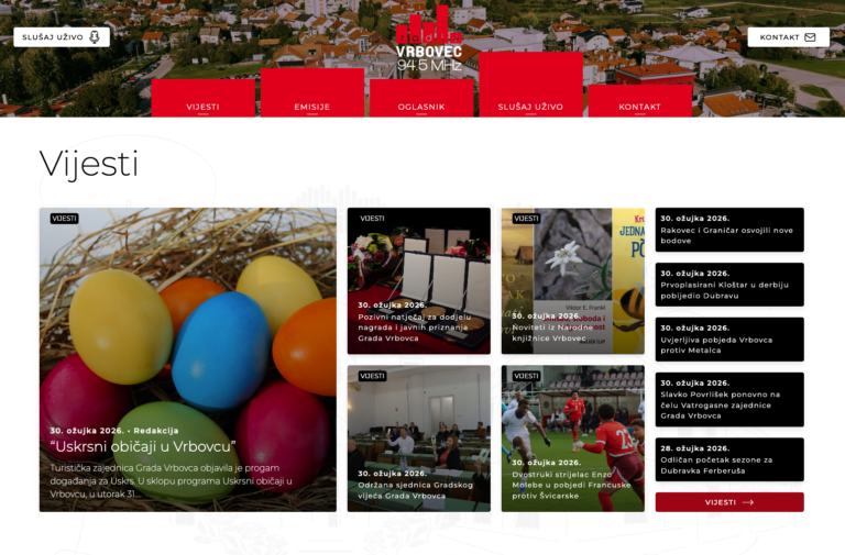 Trebali smo razviti oglasnik, player za radijske emisije i sekciju za organiziranje dobrotvornih akcija u gradu — sve na postojećoj web stranici. Budući da je stari dizajn nastao prije više godina, odlučili smo usput osvježiti cijelu stranicu.